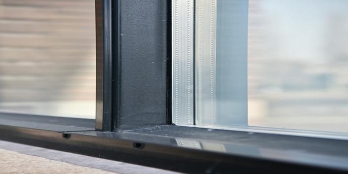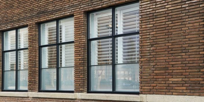 Om de geluidsbelasting op de gevel terug te dringen naar een acceptabel geluidniveau in de woning van 38 dB, moesten de stalen kozijnen worden aangepakt. Deze waren oorspronkelijk niet geïsoleerd en de ramen hadden enkelglas. Er moest daardoor akoestisch dubbel glas worden toegepast voor een betere geluidisolatie en tegelijkertijd moesten de tussenroedes en de slanke raamprofielen behouden blijven. De oplossing werd gevonden in het slanke Janisol Arte raamsysteem van Jansen AG NL/BE, waaruit de firma Smits Gemert de geveldelen fabriceerde.